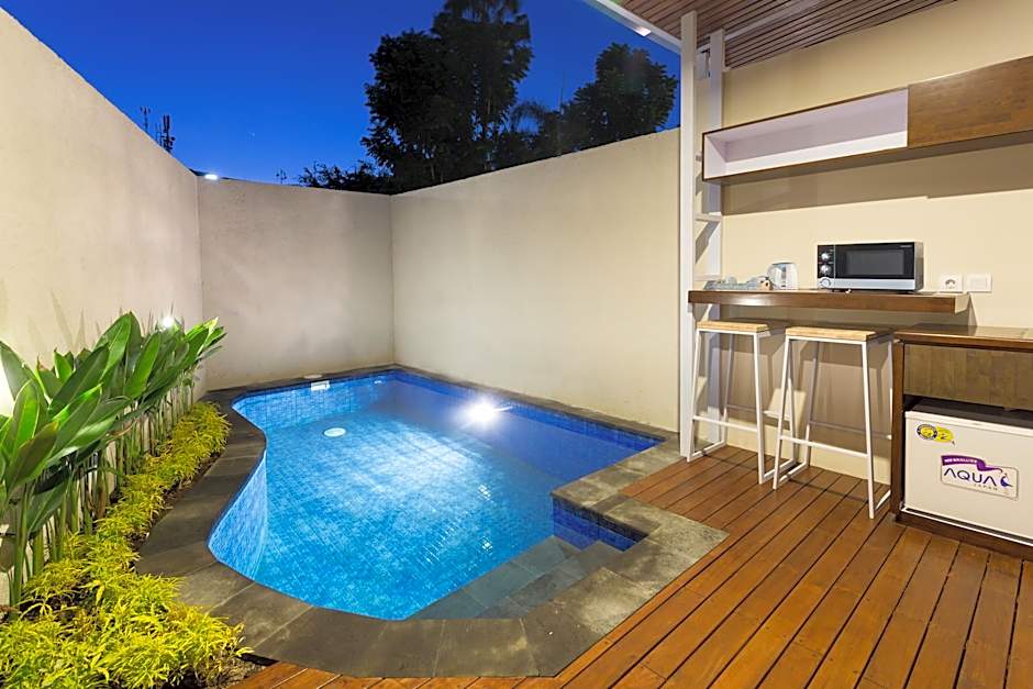 ONE BED ROOM WITH PLUNGE POOL is 538 square feet and includes a king-size bed 150-183 width plus balcony, satellite tv , cable tv, and tea and coffee making facilities .